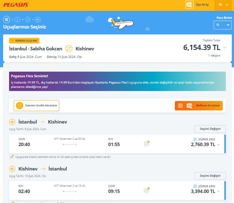 -Pegasus’ un kampanyalarına denk gelirseniz de 4.000-5.000 TL gibi bir tutarla gidiş dönüş bileti bulabilirsiniz.
