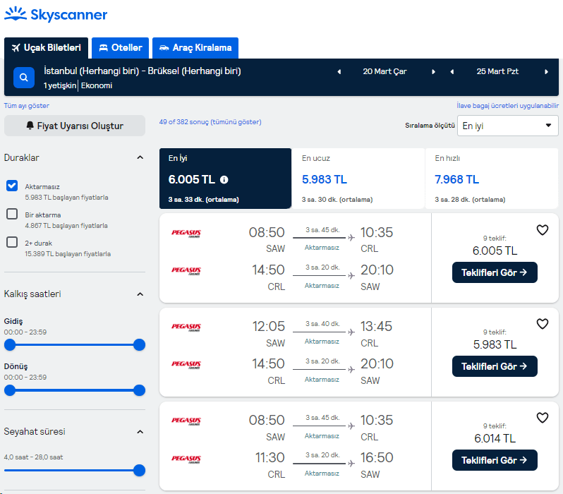 -Brüksel’de direkt olarak uçuş yapabilirsiniz İstanbul üzerinden. Pegasus ve Türk Hava Yolları şehre direkt uçuşlar gerçekleştiriyor.