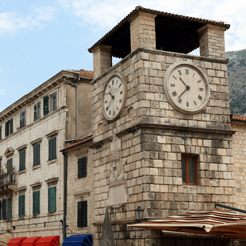-Kotor Old Town’da yer alan Saat Kulesi, 17. yüzyılın hemen başında yapılmıştır.