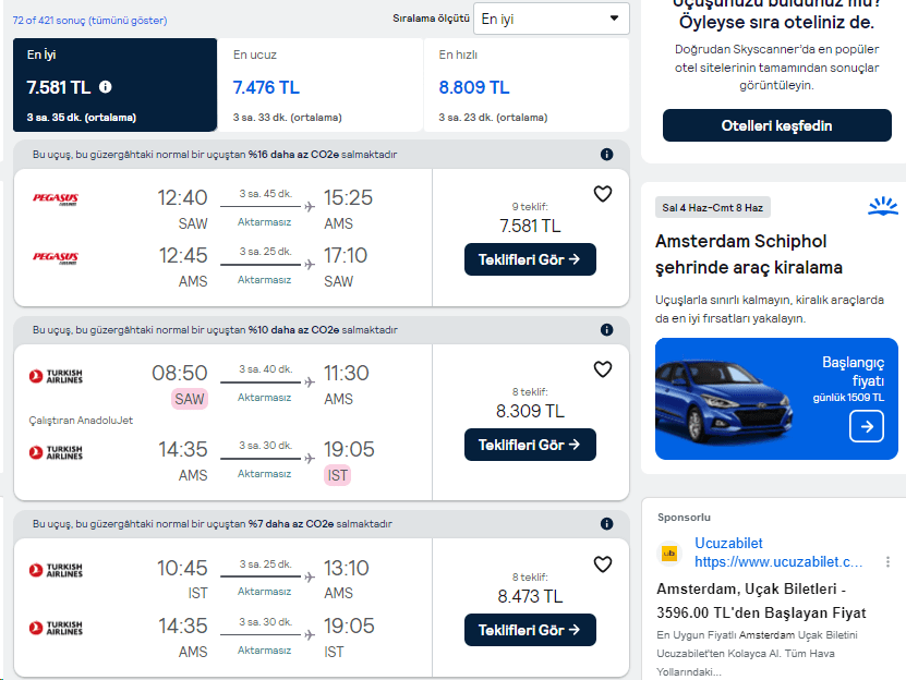-Amsterdam Schipol Havalimanı’na indikten sonra ise toplu taşıma ile Amsterdam merkezine gidebilirsiniz.