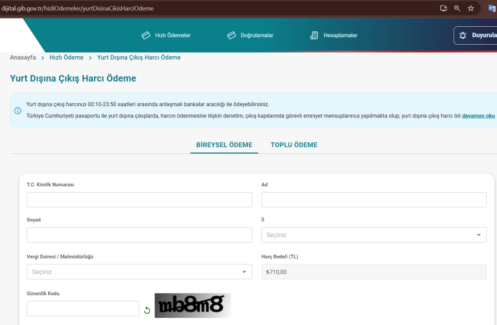 -Fakat yeni uygulamayla fiziki yurt dışı çıkış harç pulu kaldırılmıştı. Bunun yerine ise dijital ortamlardan yurt dışı çıkış harç pulu alabileceğiniz yeni bir uygulamaya geçildi.